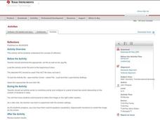 Learners explore reflection of polygons on a coordinate plane. They examine the relationships that exist between corresponding points and sides.