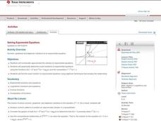Solving exponential and logarithmic equations is taught in this interactive lesson. Students use properties of logarithm and exponents solve functions. They estimate the solution and use the Ti to find the exact solution.