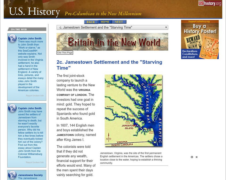 U.s. History: Britain in the New World: Jamestown Settlement