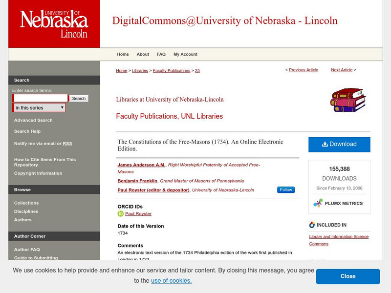 Digital Commons: The Constitutions of the Free Masons (1734)