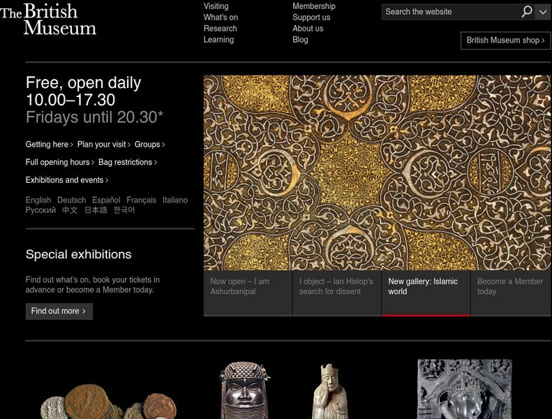 At the online home of the British Museum, one of the most influential cultural institutions in the world with holdings representing British and world cultures across the full span of history, find information about all the latest...