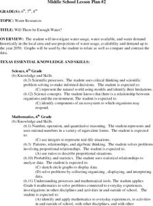 Learners investigate water usage, water available, and water demand historically in the local area. They use projections of water usage, availability and demand up to the year 2050. Students use graphs to relate as well as compare and...