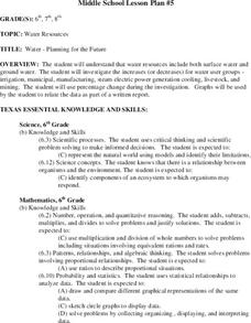 Middle schoolers explore and examine the increases and/or decreases for water user groups: irrigation, municipal, manufacturing, steam electric power generation cooling, livestock, and mining. They utilize percentage changes during their...