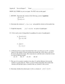 For this Algebra 2 worksheet, students solve systems of equations and inequalities then graph the solutions on a number line. There are 11 problems to solve.