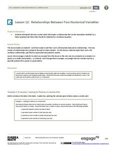 Is there another way to view whether the data is linear or not? Class members work alone and in pairs to create scatter plots in order to determine whether there is a linear pattern or not. The exit ticket provides a quick way to...