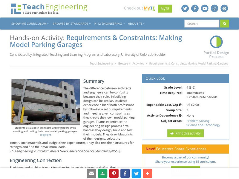 Teach Engineering: Requirements & Constraints: Making Model Parking Garages
