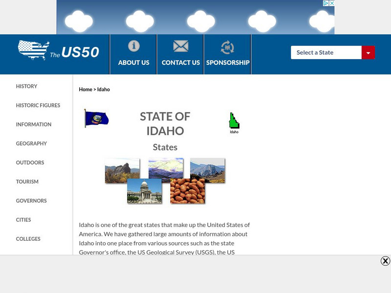 Provides key information regarding Idaho's history, famous people, cities, geography, state parks, tourism, and historic sites. A fact sheet of information and a quiz are also available.
