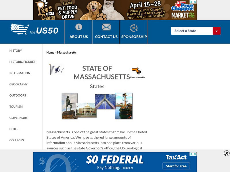 Features key information regarding Massachusetts history, famous people, cities, geography, state parks, tourism, and historic sites. A fact sheet of information and a quiz are also available.