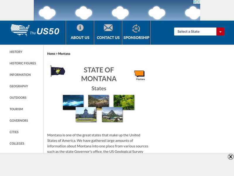 Provides excellent information regarding Montana's history, cities, geography, state parks, tourism, and historic sites. A fact sheet of information and a quiz are also available.