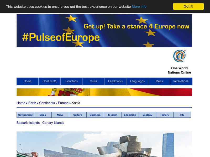 Presents a virtual destination guide and profile of the European country of Spain, background overview, and numerous links to comprehensive information on the country's culture, history, geography, economy, environment, population, news,...