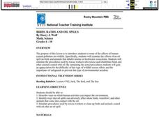 Students examine effects of an oil spill on birds and animals that inhabit marine or freshwater ecosystems, and simulate procedures used by rescue workers who rescue and rehabilitate birds and other animals coated with oil.