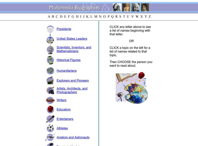 A fantastic resource where you can find biographies of historical figures. You can search by the person's name or by topics, such as Presidents, United States Leaders, Scientists, Inventors, Humanitarians, Explorers and Pioneers,...