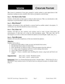 Students make detailed observations and identify an unknown using descriptions. For this observation lesson students are given a creature and must be able to identify it by species and genus.