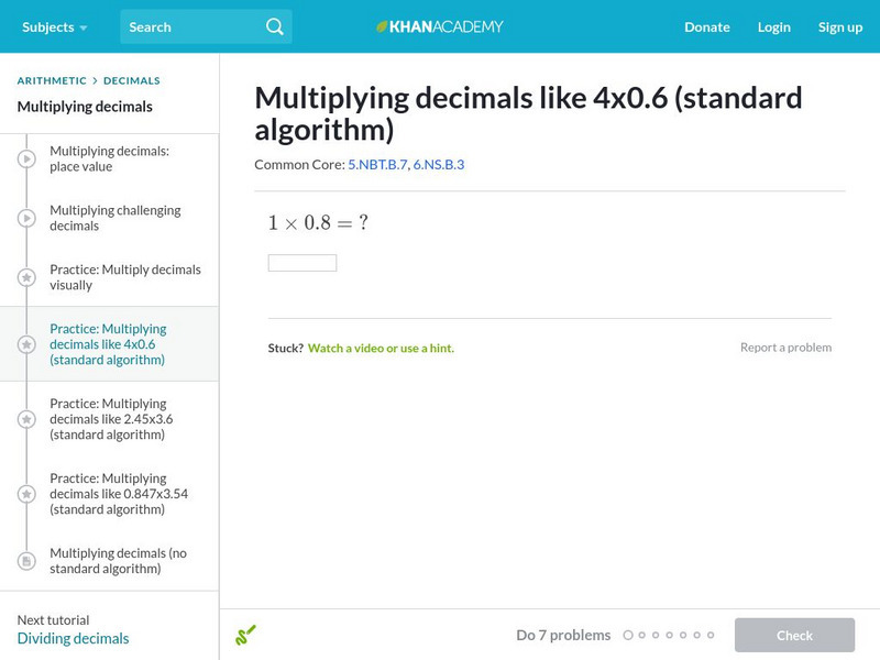 Khan Academy: Multiplying Decimals 1 (Standard Algorithm)
