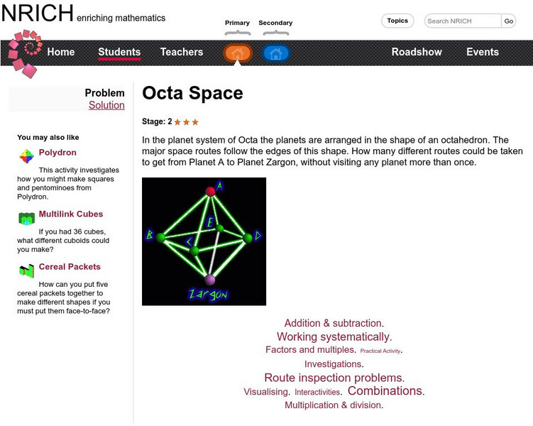 At this one page web site see if you can solve this puzzle involving the edges of an octahedron. You will definitely need to use your problem solving and spatial reasoning skills for this!