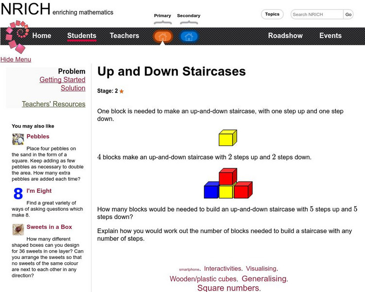 Excellent interactive challenge working with cube nets to stack them in a specific order. Manipulate the cubes online to solve the problem.
