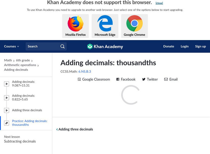 Khan Academy: Adding Decimals: Thousandths