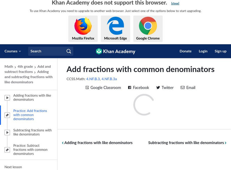 Khan Academy: Practice: Add Fractions With Common Denominators