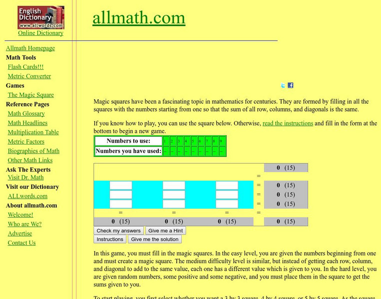 Magic squares have been a fascinating topic in mathematics for centuries. They are formed by filling in all the squares with the numbers starting from one so that the sum of all rows, columns, and diagonals is the same. Instructions are...
