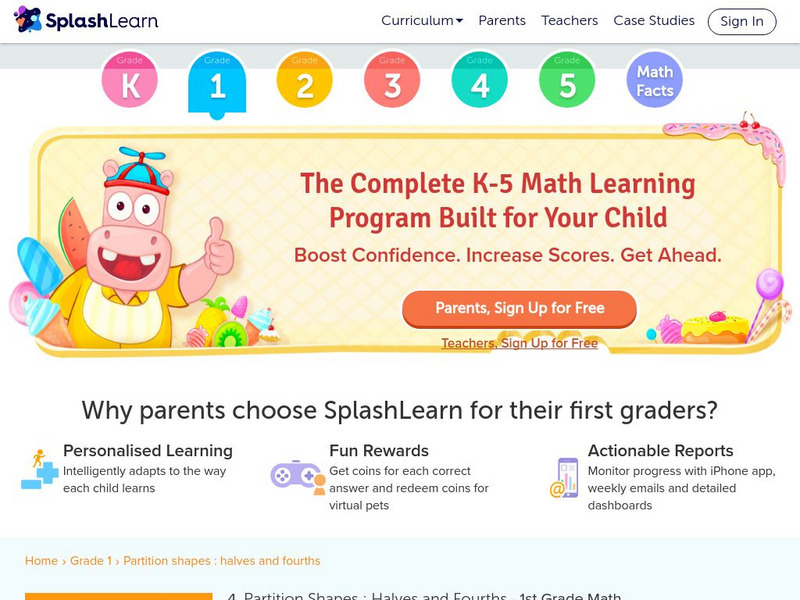 [Free Registration/Login Required] Answer questions about the halves and fourths of circles and rectangles, and collect coins for each correct answer.