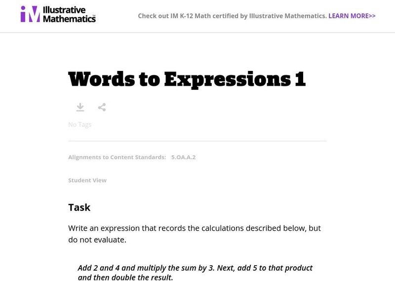 This problem allows students to see words that can describe the expression from part (c) of "5.OA Watch out for Parentheses." Additionally, the words (add, sum) and (product, multiply) are all strategically used so that the student can...