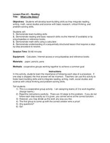 Teams of learners integrate reading, writing, math, social studies, and science in this simple, yet effective instructional activity. They work in groups in order to solve a ten-step problem which requires internet research, the use of a...