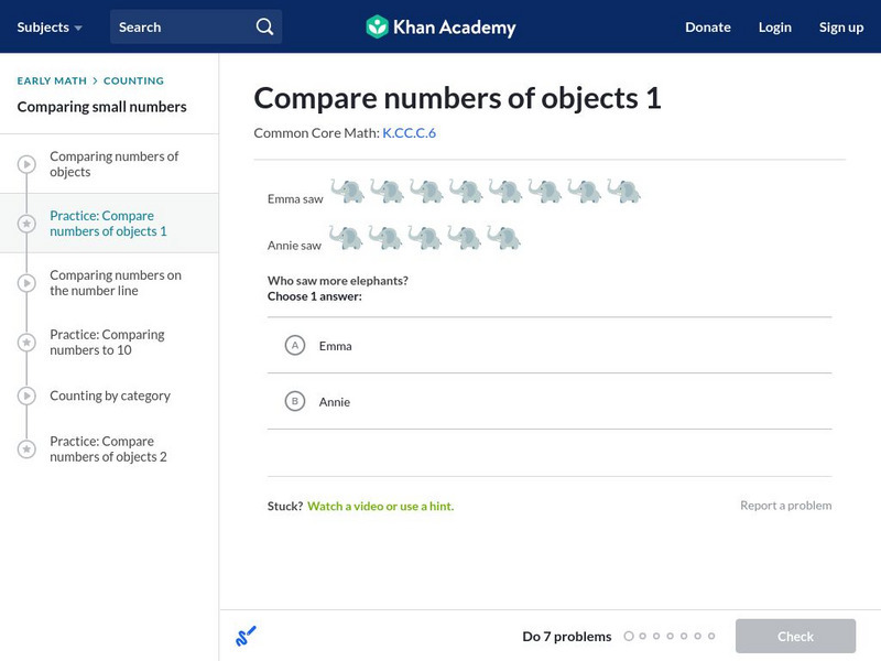 In this exercise, students practice comparing numbers of objects. Students receive immediate feedback and have the opportunity to get hints and try questions repeatedly.