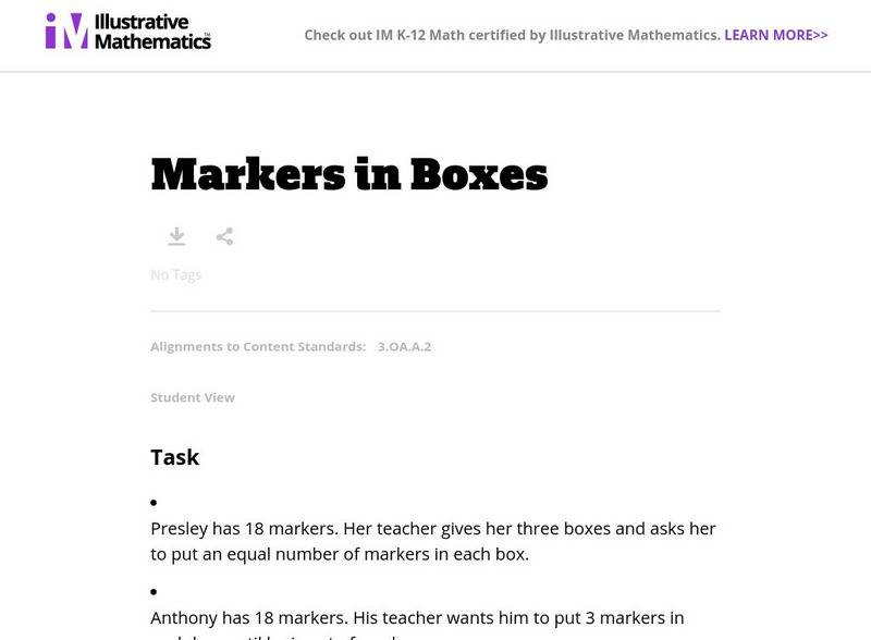 Illustrative Mathematics: 3.oa Markers in Boxes