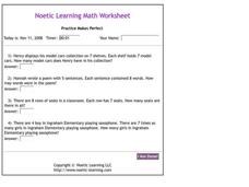 When learning how to decipher and compute word problems, this interactive math worksheet will enhance the experience. Four word problems require the multiplication of single digits to solve. Learners click "I Am Done!" to check their...