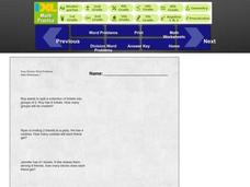 Young scholars complete a set of three problems, drawing pictures to show their work. They may click on an Answer button; page contains links to additional activities.