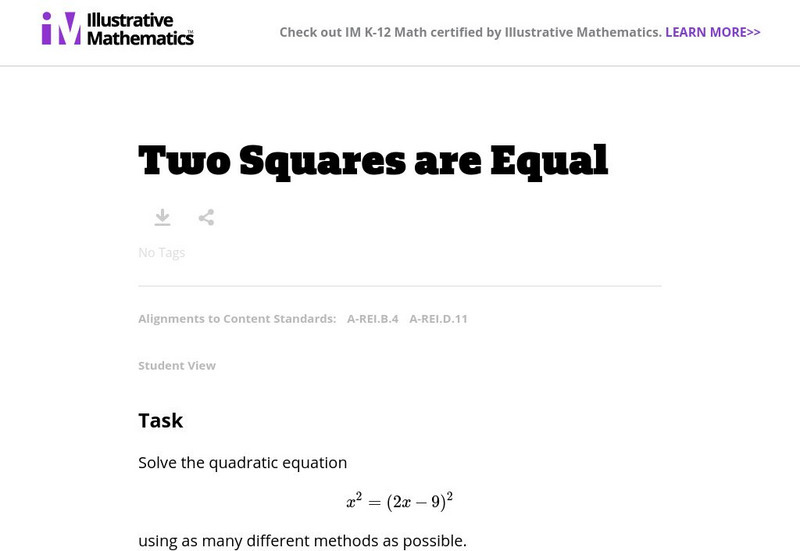 Illustrative Mathematics: A Rei Two Squares Are Equal