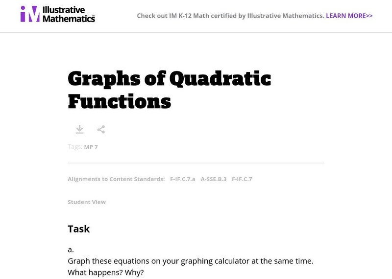 Illustrative Mathematics: F if.c.7.a, a sse.b.3, F if.c.7: Graphs of Quadratic