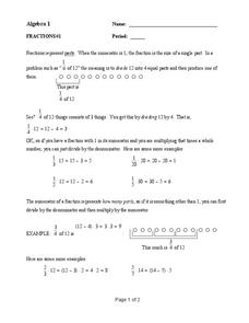 Students solve fractions using division. In this algebra instructional activity, students solve fractions by flipping and multiplying by the reciprocal. They practice dividing fractions with improper fractions or mixed...