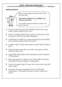 In this math operation learning exercise, students read the story problem and find the answer by solving a single operation problem. There are 9 questions on this learning exercise and the answers are on the second page.