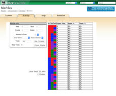 Grab some marbles from a bag. The applet simulates drawing marbles from a bag. Pupils determine the number of four colors of marbles in a bag and how many marbles to draw. Using information on whether order matters in the draw and if...
