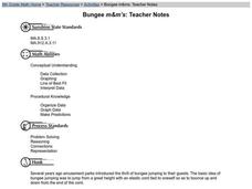 Eighth graders experiment with M&M's and a cup attached to a spring to to simulate a bungee jump. They graph the results of the experiment and make predictions for continuing the experiment. They determine the "line of best fit."