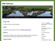 Class members blend their knowledge of functions and problem-solving skills to provide business advice to the Turbo Blender manufacturers. Through a project-based approach, learners examine marginal cost data to produce a function....