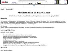 Students examine mathematicians' notion of fairness in games of chance. They work in pairs to perform three different experiments using macaroni and paper bags. They record their results on charts and compare their data.