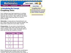 First graders explore the concept of graphing. In this data lesson, 1st graders gather information from a class survey and display their findings on a picture graph. Students also practice solving problems that their instructor models.