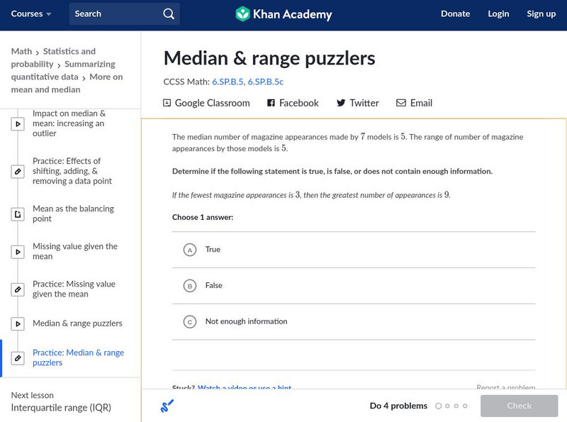 Khan Academy: Median & Range Puzzlers