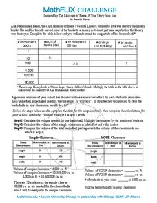 In this volume worksheet, learners solve and complete 10 different problems that include determining the volume of books in a library and their weight. First, they complete the table with the weight, number of days and number of boxes...