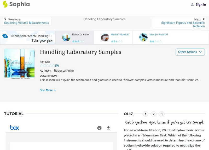 This lesson will explain the techniques and glassware used to "deliver" samples versus measure and "contain" samples. It is 3 of 3 in the series titled "Handling Laboratory Samples."