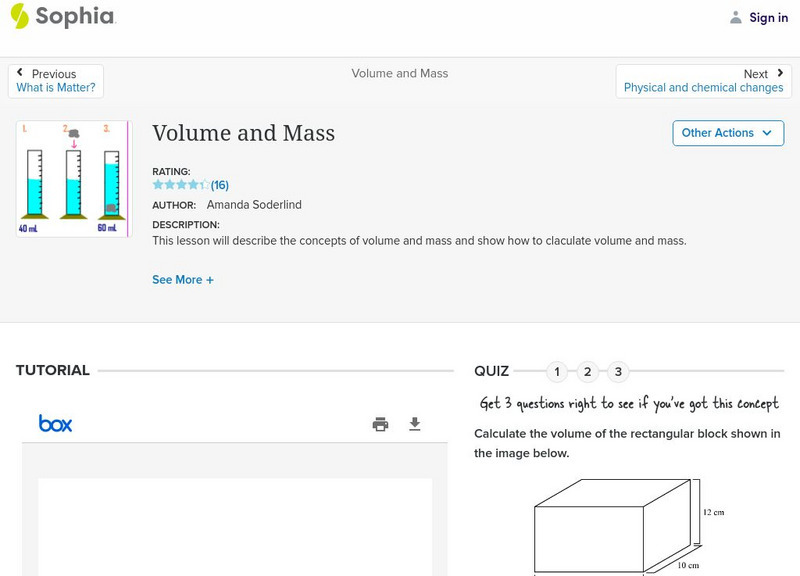 This lesson will describe the concepts of volume and mass and show how to calculate volume and mass.