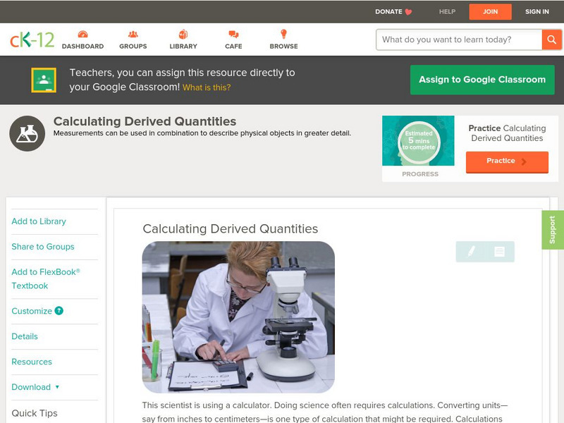 [Free Registration/Login may be required to access all resource tools.] Definition of derived quantity and calculation and units of derived quantities (area, volume, density).