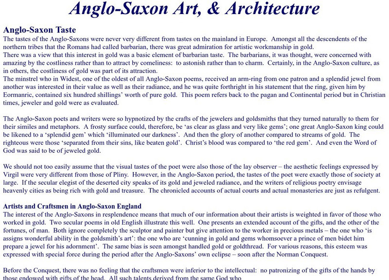 Utah Valley State College: Anglo Saxon Art and Architecture