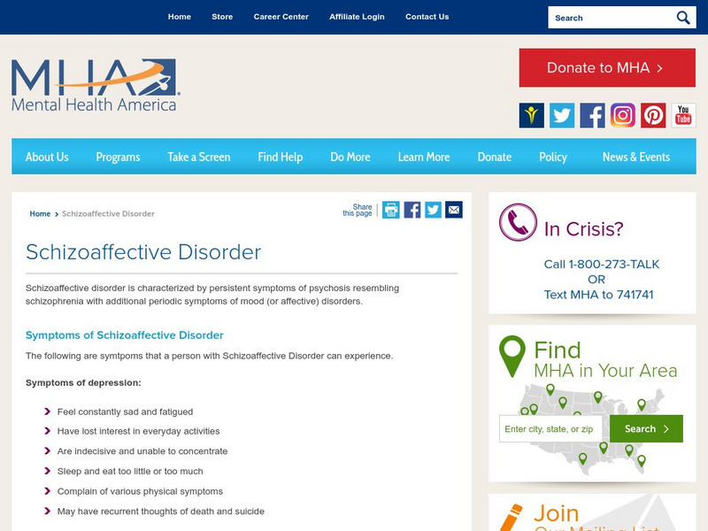 Mental Health America: Mental Health Info: Schizoaffective Disorder