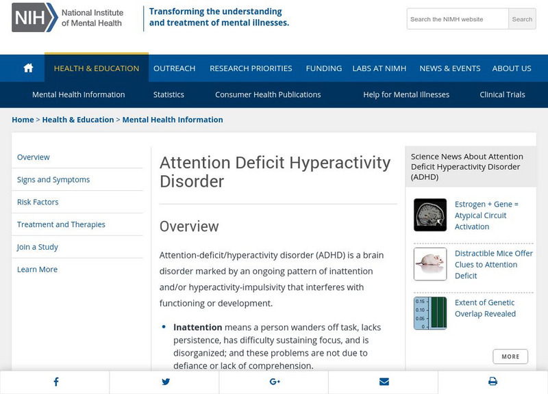 National Institute of Mental Health: Attention Deficit Hyperactivity Disorder