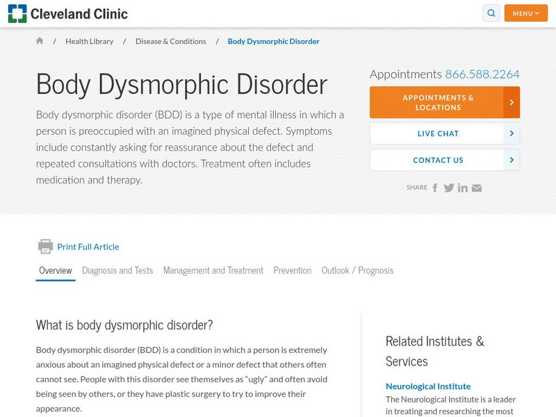 BDD is described here as a type of somatoform disorder, a mental illness. Article explains the symptoms, causes, diagnoses and treatment.