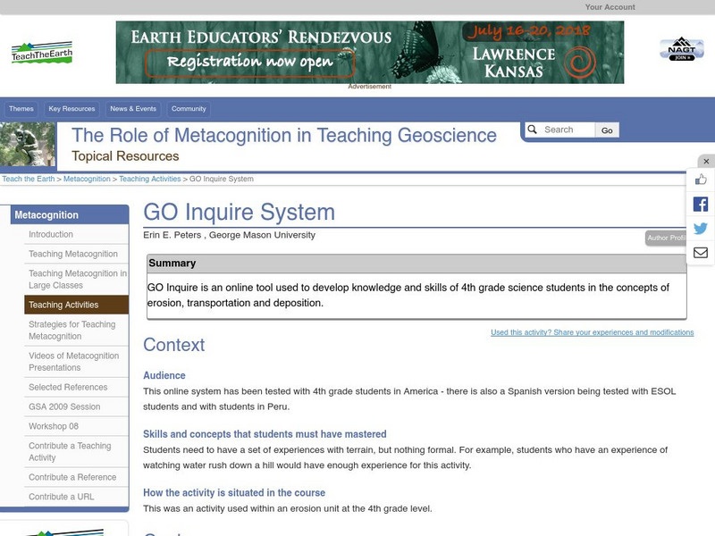 Students us the GO Inquire online tool to develop knowledge and skills in the concepts of erosion, transportation, and deposition.