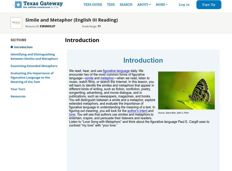Texas Gateway: Simile and Metaphor (English Iii Reading)
